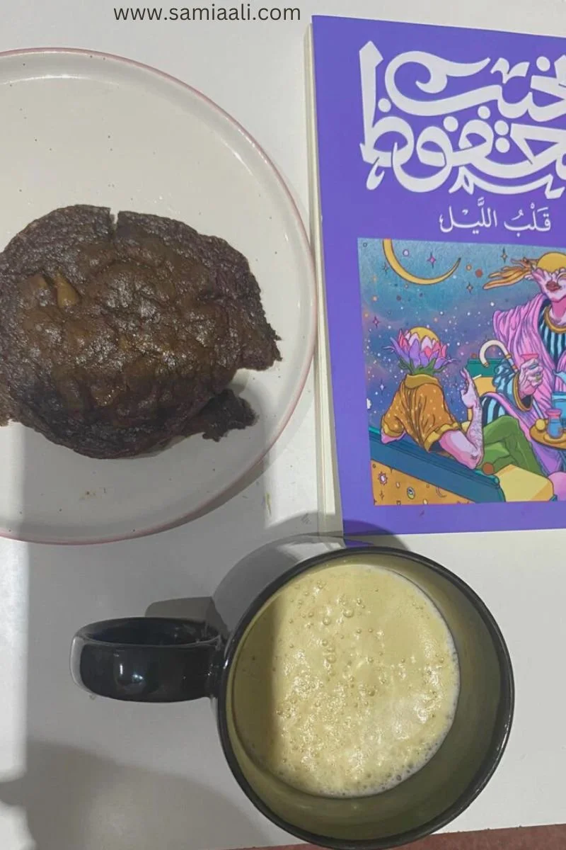 هاليومين احس بس نفسي بكوكيز بالشكولاته سويته بس ايش بالعاده انا اوزنهم على الميزان برقم واحد عشان يكون شكلهم متناسق وشكل واحد. بالعاده الوحده يكون وزنها ٤٥ جرام تقريبا لكن هالمره مالي نفس ولا خليته يخمر لليوم الثاني فسويتها ٥٠ جرام ونسيت ابعدهم عن بعض كويس فا التصقوا ببعض وصار شكلهم كبير ومسطح ماعجبني الشكل .ولما ذقتها ماعجبني الطعم بالبدايه بس قلت مو مهم المهم عندي اني اكل كوكيز. فا كانوا دافيين قمت حطيت اثنين على بعض ولصقوا في بعض وماركزت وما قدرت افصلهم خلاص قلت كملت بس والله مو هامني ههههههه عشان كذا شكلهم غريب في الصوره. المهم انا ما قراءة فاليوم بخلص الروايه هذي ان شاء الله. انا عندي رف للكتب صار له سنه ماني عارفه اعلقه على الجدار لانه يحتاج دريل اشتريت واحد من موقع لما جاني طلع دريل استعمال خفيف مو للجدران والرف من يومها جالس. كان عندي امل لما جبته احط فيه الكتب لان ماعندي مكان زيادة لها وحاطتها بصناديق وفي بعضها اشتريتها ونسيت حتى اقرائها يعني لو تكون قدامي كان عرفت ايش عندي من كتب. أتمنى لو كان عندي مكتب واحط فيه مكتبه للكتب وارتبها على حسب نوعها ، واحط فيه جلسه للقراءة والتفكير والتأمل