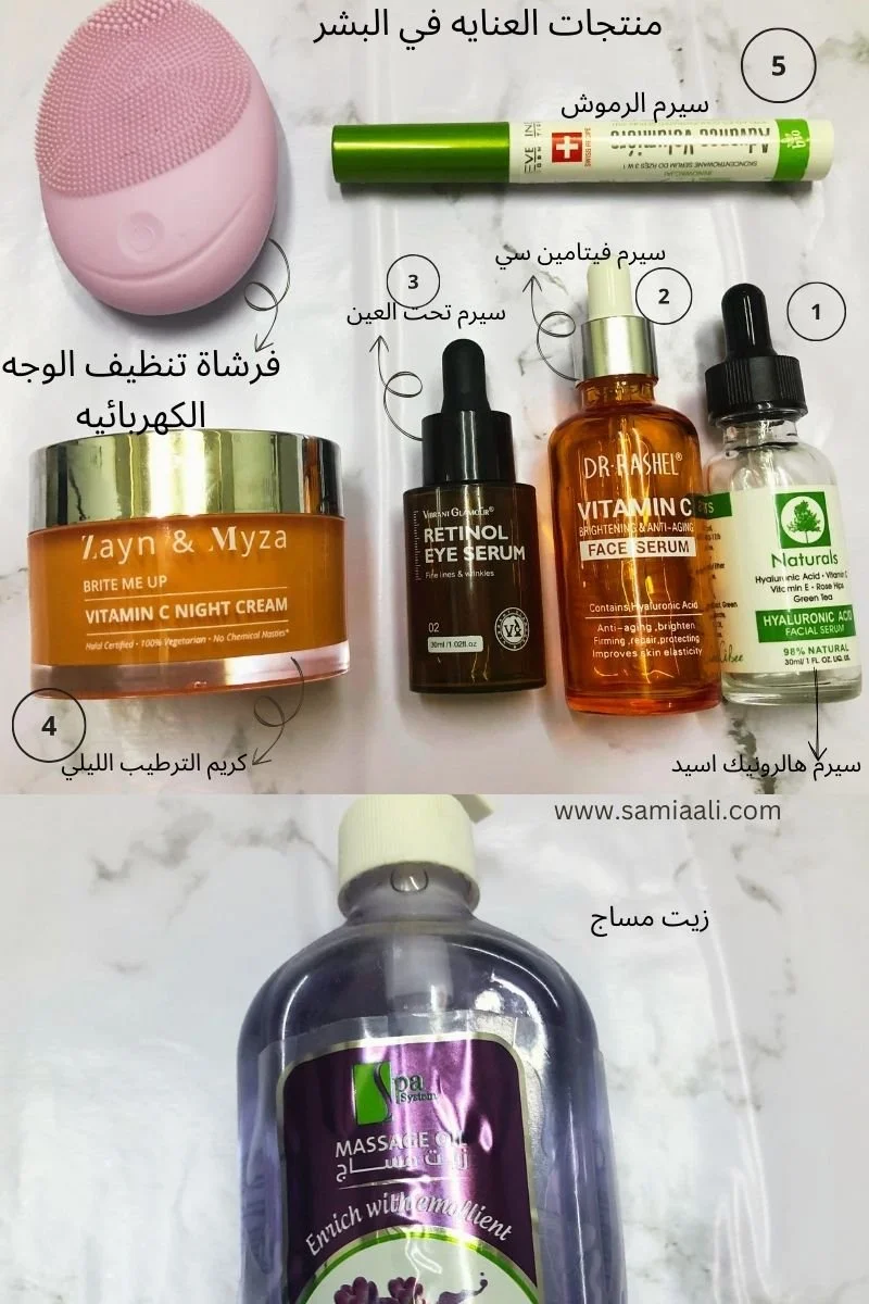 عنايتي في وجهي قبل النوم تكون عميقه اكثر، احب أولا اغسل وجهي كويس لان فيه بقايا مكياج ، الاتربه والاوساخ خلال اليوم فا يحتاج تنظيف عميق عشان كذا استخدم فرشاة تنظيف الوجه الكهربائيه احب هالنوع عشان تسوي مساج لوجهي وانا انظفه وتحرك الدوره الدمويه. بعدها ضروري امسح المويا من وجهي بمنديل مو منشفه لثلاث أسباب. أولا المنشفه لو استخدمناها اكثر من مره احتمال يكون فيها بكتريا وتسبب لنا حبوب في البشره، ثانيا المنديل استعمال واحد وارميه بشرتي مارح تتضرر منه واخر شي لان بشرتي مختلطه مائله للدهنيه عشان كذا لازم انشفها من المويا قبل ما احط أي منتج عليها لان المويا رح يكون عازل ويمنع المنتجات تدخل بشرتي. قبل كنت اول شيء اسويه امسح وجهي بتونر الوجه بس خلص وما شتريت جديد فا الحين ابداء بسيرم الهارونيك اسيد على طول ، بعدها سيرم فيتامين سي، بعدها احط سيرم تحت العين ،بعدها احط الكريم الليلي بفيتامين سي، بعدها احط مرطب شفايف او فازلين ، بعدين احط سيروم للرموش بس هذا عيبه انه يطلع طبقه بيضاء مزعجه يعني مو شفاف واذا كثرت منه يدخل العين ويحرقها. صار لي مده استخدمه احس قاعده اشوف نتائج ما شاء الله. اخر شيء احب ادهن جسمي و اتعطر، أحيانا اسوي خطوه زياده اذا كان اليوم مجهد اسوي مساج بسيط لجسمي مره شي مريح للأعصاب وتنامين بهدوء وسكينه بعد هذا الروتين