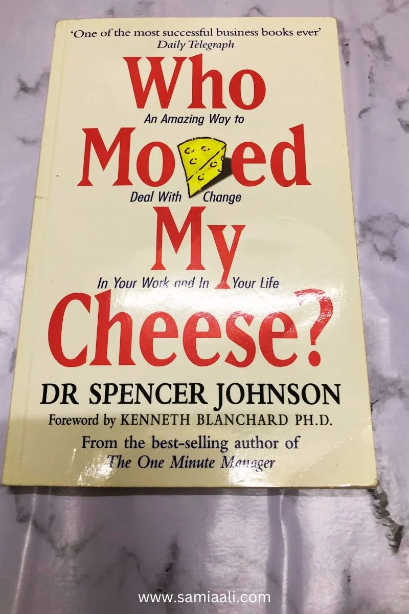 فكرة الكتاب الرئيسية هي التغيير. يتكلم الكتاب عن أصدقاء من مدينة شيكاغو الأمريكية تجمعوا بعد مده عشان يعرفون اخبار بعض. الأصدقاء اكتشفوا انهم عندهم مشكله ابتدأت معهم بعد التخرج من الثانوي، مع ان بعضهم كان ناجح وحياته ماشيه بشكل جميل الا ان عندهم نفس المشكلة وهو الخوف من التغيير. بعدها مايكل حكى لهم قصته مع التغيير " كنت أخاف من التغيير المفاجئ بالحياة، ما اعرف ايش اسوي وما اعرف كيف اتعايش معاه واحيانا كنت احس اني قاعد اخسر الفرص بالحياة. الى ان سمعت قصه بسيطة وطريفة غيرت حياتي. خلتني انظر للتغيير بشكل مختلف من خسران شيء الى الحصول على شيء أفضل." القصة هي عن أربع شخصيات صغيره اقزام وفئران. الاقزام هما هيم و هاو و الفئران سنيف و سكوري. كل صباح الأربع شخصيات يروحون للمتاهة للبحث عن الجبن وكل شخصيتين لهم طريقتهم في التفكير والبحث. كانوا كل ما يروحون لمتاهة سين يلاقون الجبن هناك الاقزام كانوا مبسوطين من هذا الامر ومرتاحين لأنهم مارح يتعبون ولا يشقون عشان يبحثون عنه، بينما سنيف و سكوري كانوا مجتهدين وفطنين فا لاحظوا ان محصول الجبن بداء ينقص بشكل تدريجي. الين ما جاء صباح يوم من الأيام سنيف و سكوري ما حصلوا الجبن من هنا عرفوا ان صار تغيير بالمكان وعلى طول تجاوبوا معاه وما فضلوا بمكانهم بدأوا يبحثون عن مكان ثاني يلاقون فيه الجبن. بينما هيم وهاو انصدموا من الي صار وجالهم اكتئاب وما هو عارفيني ايش يسوون وظلوا يرجعون يوميا لمتاهة سين عشان ممكن يكون فيه جبن. الشاهد من القصة ان الكاتب بين ان الناس تنقسم الى قسمين قسم جاهز انه يتغير مع ظروف الحياة وتقلباتها وجزء يرفض التغيير وما يعرف كيف يتعامل معاه. فا الجبنة هي مثال لرغباتنا في الحياة، مال، وظيفة، بيت، حب، راحة بال، أولاد. والمتاهة هي تشبيه للمحيط الي نبحث فيه عن رغباتنا، البيئة الي عايشين فيها ومكان العمل